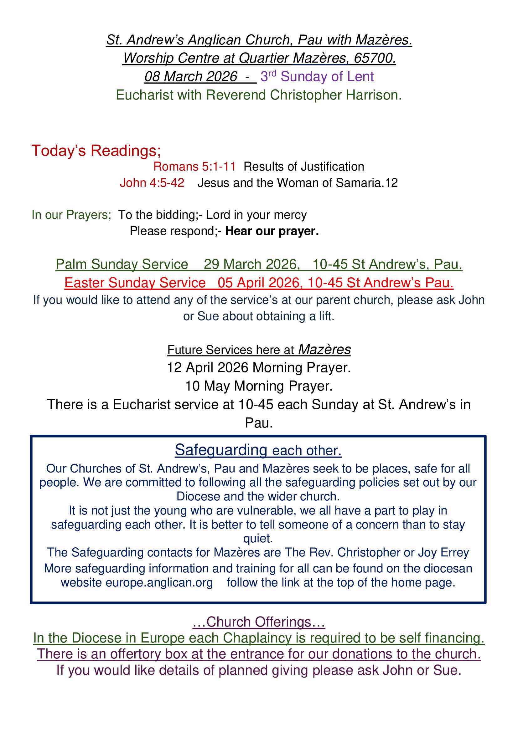 Our church in Mazères serving the Southern Gers is an outreach church of St Andrew’s and was established in 2012.