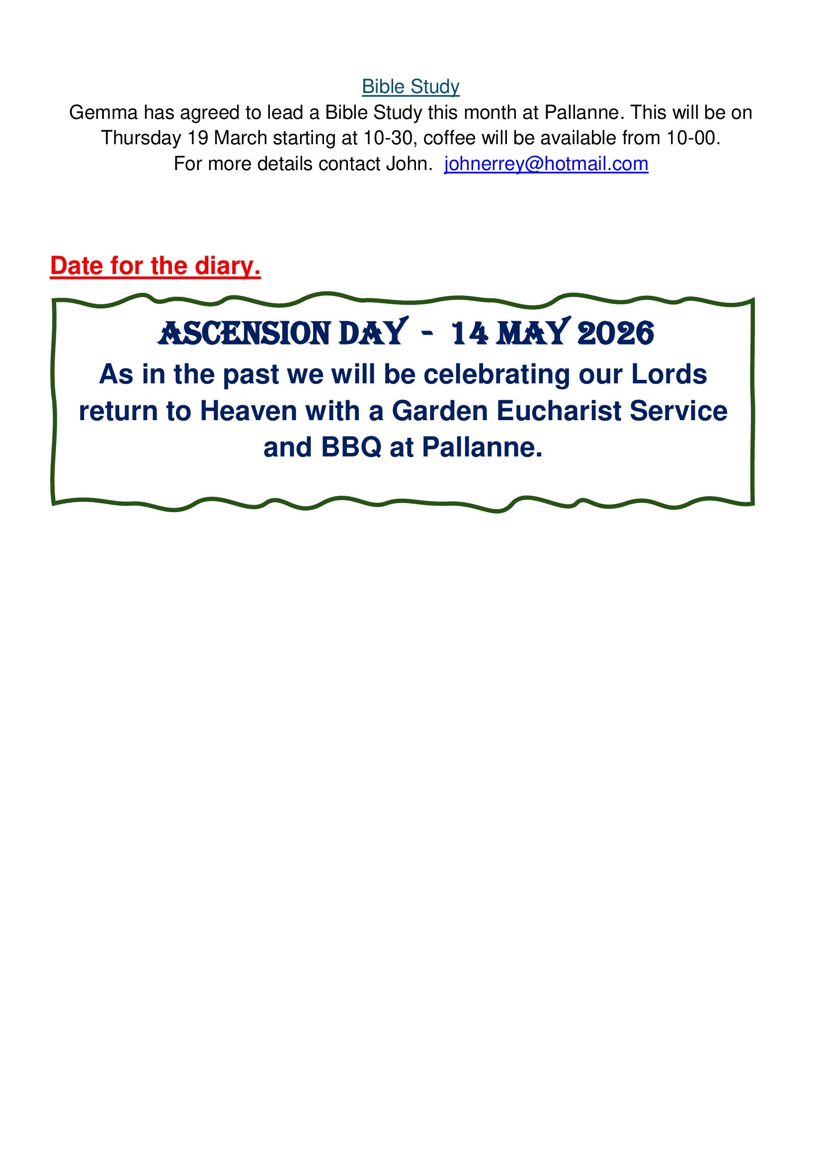 Please see below our monthly pewsheet giving further details of our services and activities.